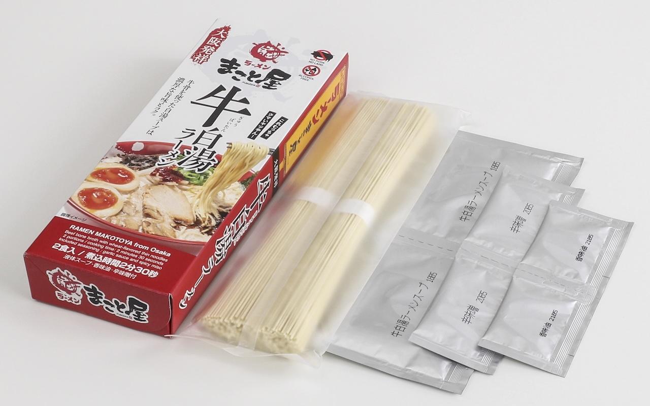 大阪発祥ラーメンまこと屋の看板商品である「牛白湯ラーメン」を商品化。 麺はお店で使用しているのと同じ小麦粉・規格で再現。 味の命である牛白湯スープに加え、別添で香味油・辛味噌も再現。 インバウンドお土産対応として、基本的な英語表記を記載。 QRコードを読み取ることで、日本語・英語・中国語・韓国語での調理方法の動画再生に対応。