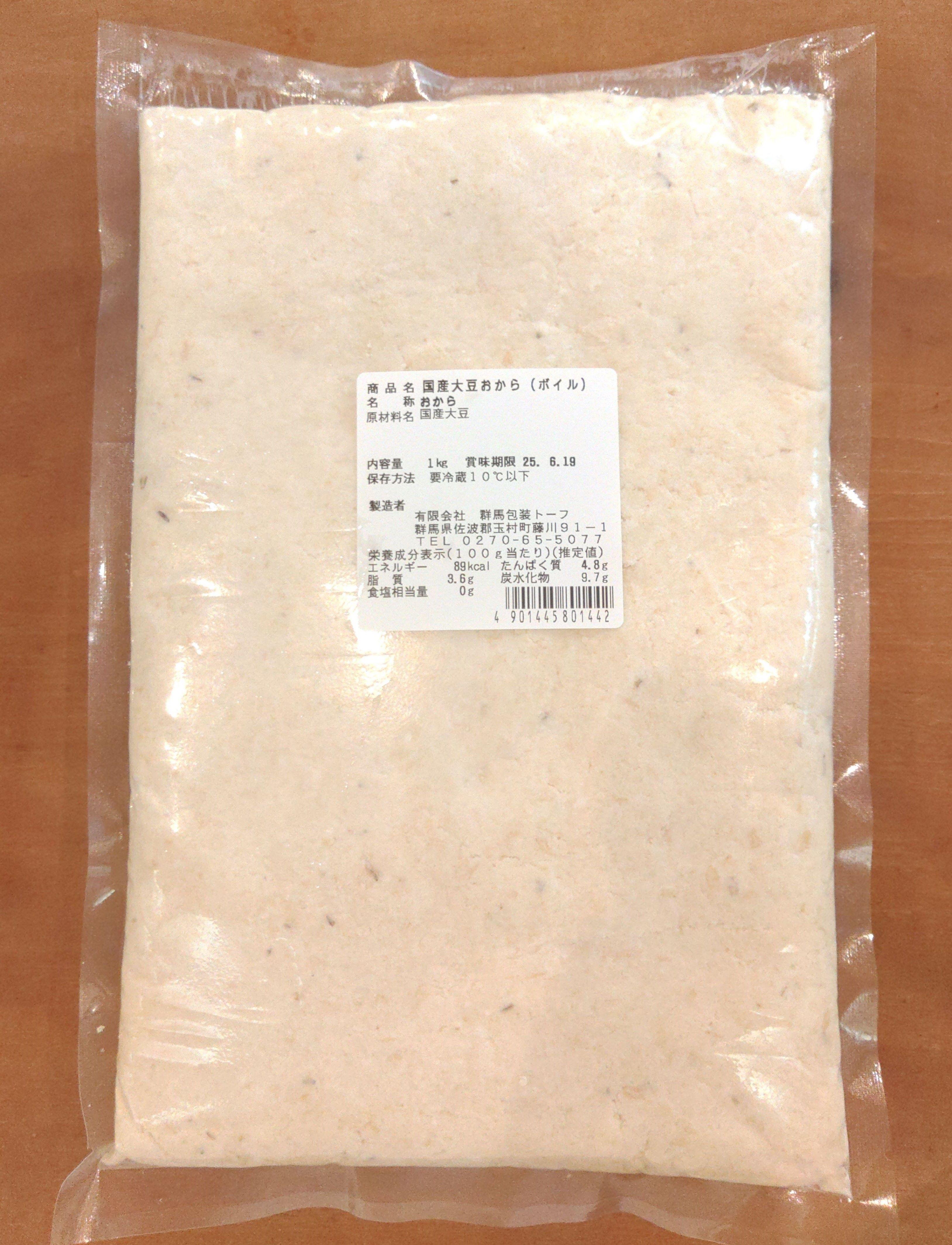 地元群馬県玉村町産大豆を中心に厳選した国産大豆を使用した熱処理加工済みの「業務用国産大豆おから」です。 食物繊維豊富で100gあたり11.5gの食物繊維を含みますので腸内環境を整える効果が期待できます。 様々なお料理等にお使いいただけます。 厳選した大豆の銘柄によっては胚芽が黒い芽のものがありますのでおからに混入致します旨ご了承ください。