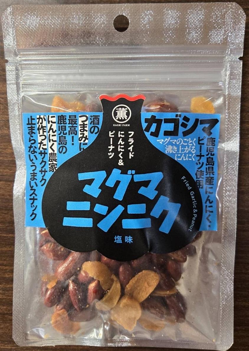 火山灰土壌で育った香り高い鹿児島産にんにくを、カリッと揚げたフライドガーリックに、 香ばしくローストした落花生を絶妙ブレンドしたお酒のおつまみにオススメのスナック菓子です。 そのままボリボリお召し上がり頂けます。 サクサクのフライドガーリックとカリカリの落花生がビールとの相性バッチリです。
