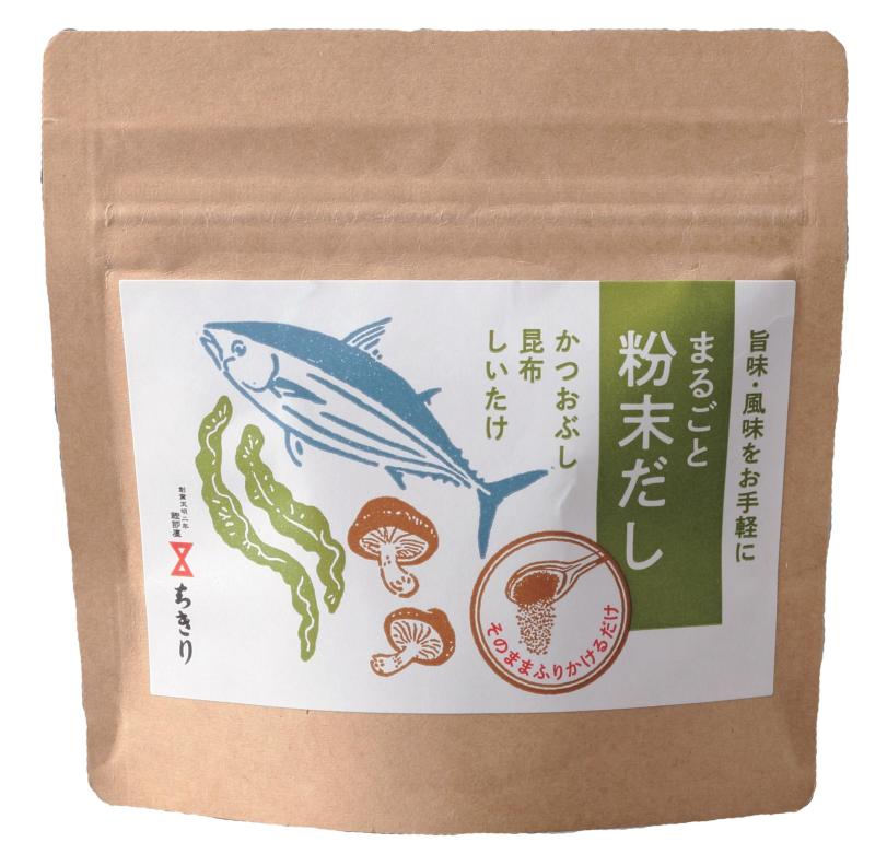 パウダー状に粉砕した鰹節、昆布、椎茸のみをブレンドした商品です。粉末タイプなので、手軽にお料理にご使用いただけ、香り立ちが良く、口にしたときに舌触りが気になりません。だし利用の他、仕上げの風味足し、カップ麺のうま味足し、離乳食づくりや食塩の摂取量を考慮したメニューづくりにもおすすめです。