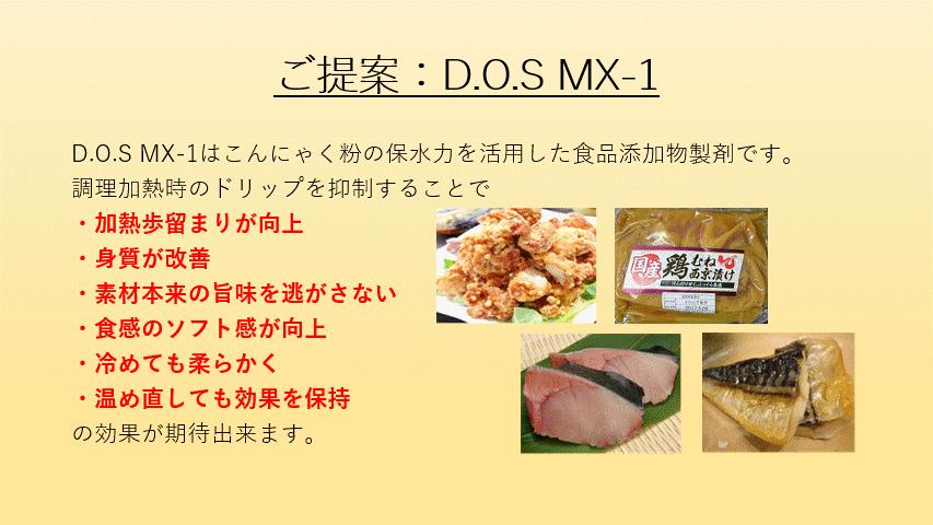 荻野商店は、グルコマンナンを始めとした「こんにゃく粉」を製造販売している会社です。また、こんにゃく粉を利用した製剤開発にも取り組んでおり、こんにゃく粉の秘めた可能性を追求しております。今回、ご紹介させて頂きます「D.O.S MX-1」は、こんにゃく粉の「保水力」を活用した食品添加物製剤となります。例えば、お惣菜の定番『鶏の唐揚げ』では、調理加熱時のドリップを抑制することで「加熱歩留まりが向上」「身質が改善」「素材本来の旨味を逃がさない」「食感のソフト感が向上」「冷めても柔らかく」「温め直しても効果を保持」等の効果が期待出来ます。なお、食品安全の管理体制は2019年6月に食品安全マネジメントシステムに関する国際規格である『FSSC22000』を取得し、安心安全な製造管理体制の構築に努めております。