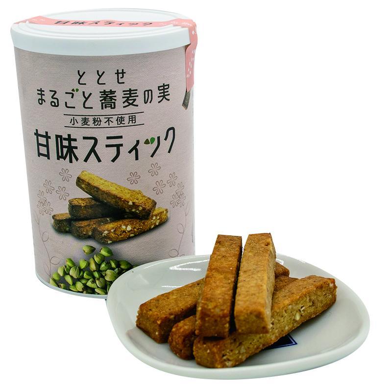 数段階に粉砕した蕎麦の実を練り合わせたグルテンフリーの焼菓子です。甘味スティックは蕎麦の実の甘みと香ばしさが口いっぱいに広がるザクザク食感でナッツ入りのようです。キューブは口に入れるとほんのり塩味と香ばしさであと引く美味しさです。グルテンのない蕎麦の実の生地を壊れないよう形成し理想の食感に焼き上げることに工夫をしました。