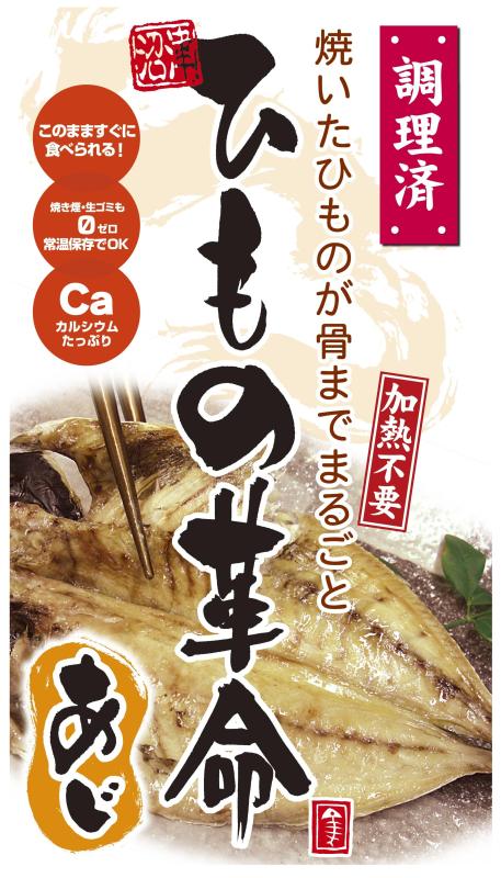 骨まで食べられる焼き魚(干物革命あじ)焼いた干物を真空し高温高圧処理をしているため、加熱不要袋から出して頭から尻尾までまるごと全部食べられます。カルシュウム摂取950㎎とれ生ゴミが出なく・アルミの袋に入っており常温で1年の賞味期限になります。 お土産に・非常食に最適です。水と塩のみを使っている為安心安全して召し上がれます。