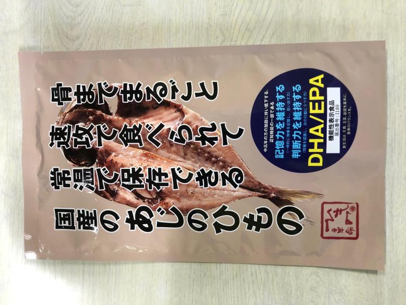 機能性表示食品あじ(骨までまるごとあじの干物(国産)干物としては初めて機能性表示食品に登録されました。商品開発までに研究場・試験場・大学の協力をえて、2023年5月に登録されました。 サプリメントではなく、食品で干物でDHA/EPA(記憶力と判断力を中高年の方の加齢に伴い低下する認知機能の一部を助ける機能 頭から尻尾まで食べられるので・カルシュウム摂取891g・常温で1年保存・生ごみがでない・非常食としても便利な商品です。