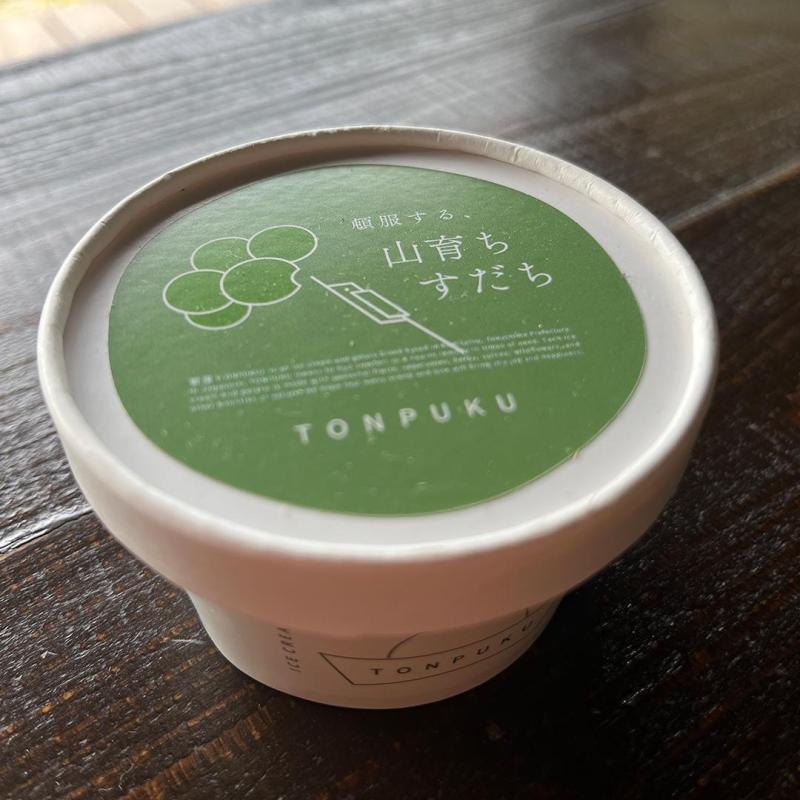 私たちTONPUKUは温州みかんがメインの柑橘農家でもあります。8月~10月初旬にかけては、すだちの収穫出荷に大忙し。すだちの名前は、果実に多く含まれる果汁を食酢として使用していたことから酢橘(すだちばな)に由来するといわれていますが、果汁だけではなく、その香りも満喫していただきたい!柑橘の香り成分は主に皮の部分に多く含まれます。爽やかなすだち特有の香りを堪能していただけるよう、丁寧に削った皮も練り込みました。キリッとした酸味が癖になり、どこよりもすだち感の強いジェラートです。