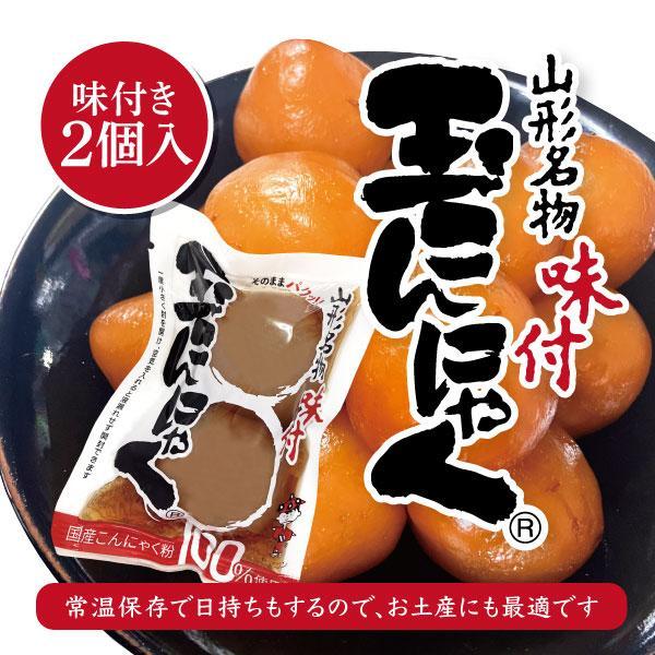 山形名物玉こんにゃくの元祖メーカーが製造する玉こんにゃくとして、強い弾力と歯応えにこだわって製造しております。かつおだしの効いた醤油で味付けしており、常温や温めて、夏場は冷やしても美味しくお召し上がりいただけます。個包装(1袋2個入り)なので、お土産にはもちろん、小腹が空いた時のおやつにも丁度いい食べきりサイズです。低カロリーでありながら、満足の食べ応えです。
