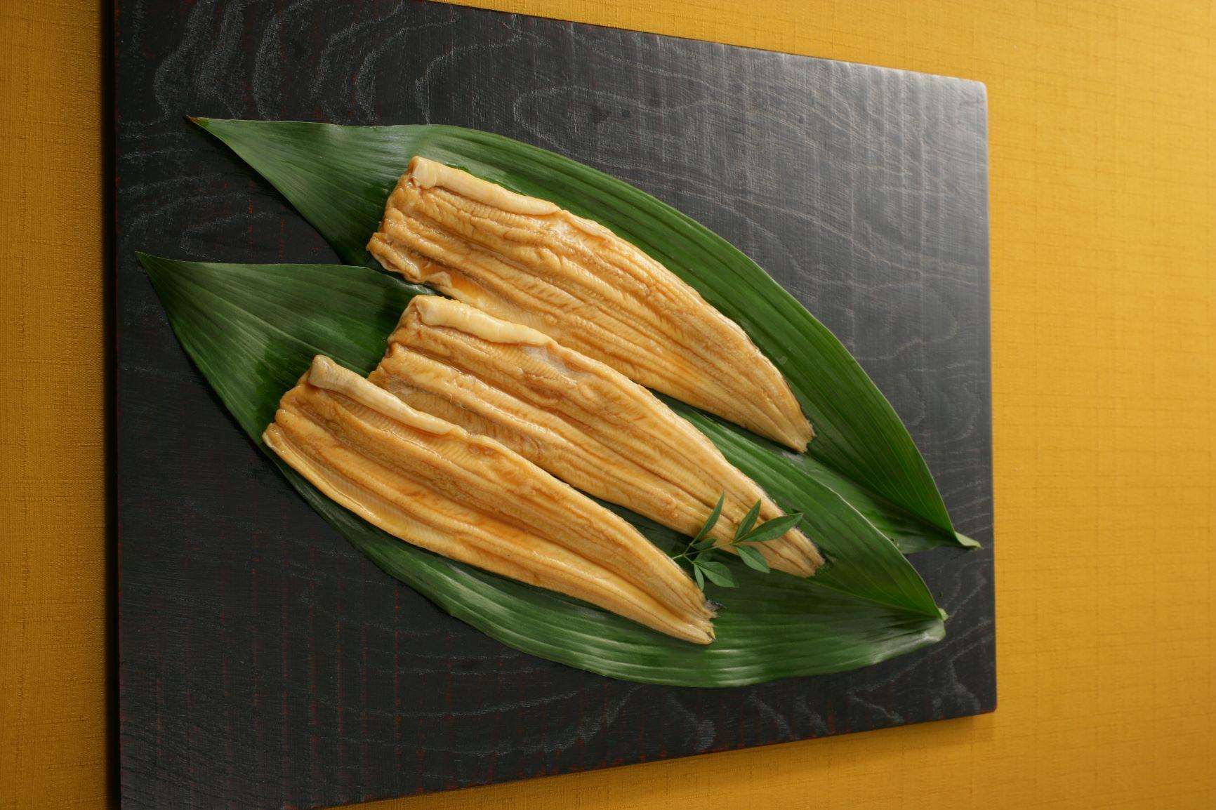 仕入れたあなごを目利き(脂ののり、サイズ、品質等)し、小骨等の下処理を施し、先ずは皮を中心に白焼き、流水で水洗いをしてぬめりを落とし、十分に水分をとった後に焼いたあなごの頭からとった秘伝の出汁に漬け込みしっかりと焼き上げています。脂ののりを基準に商品の優劣を決めていますので、最高レベルの焼あなごは一粒であなごの美味しさが口の中で広がります。また、上・中レベルの焼あなごであってもお寿司等のお惣菜にお使い頂く事であなごの美味しさが前面に出したメニュー作りが出来ます。弊社と組んで松井泉の焼あなごを販促に活用することで売上・集客アップに繋がります。 内容量等の規格は明記しておりませんが、業務用・小売用としてそれはそれぞれのシーンで使いやすいような規格がございます。