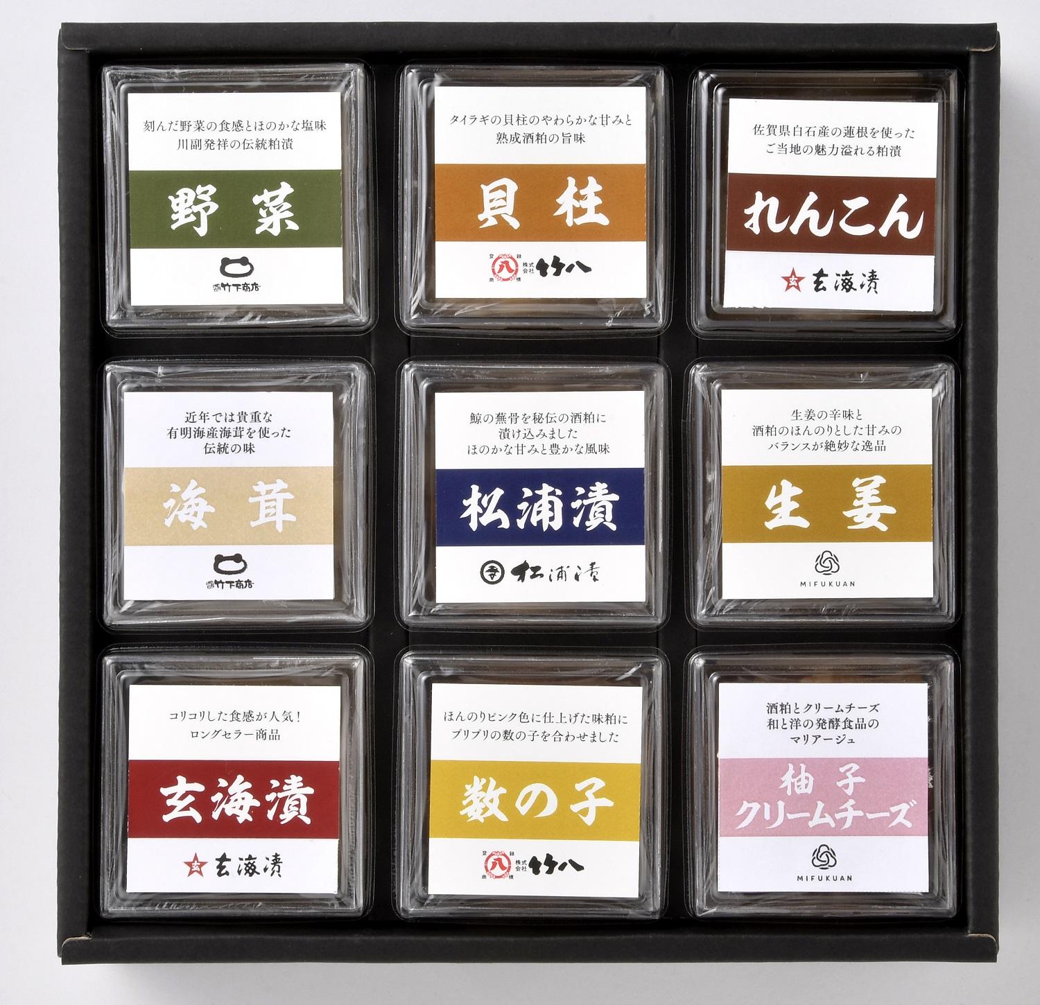 竹八は今年で創業90年。佐賀では老舗粕漬メーカーとしてそれなりの知名度はある。しかし、将来を見据えると、若年層へのアプローチに必要性を痛感。20代、30代にとって珍味は馴染みのない味覚。少量を試してからでないと買わない傾向。→少量入りのお試しセットを販売すればいいじゃないかと言う、逆転の発想。人気の竹八漬シリーズから9種類を選び、見て目にも可愛らしい