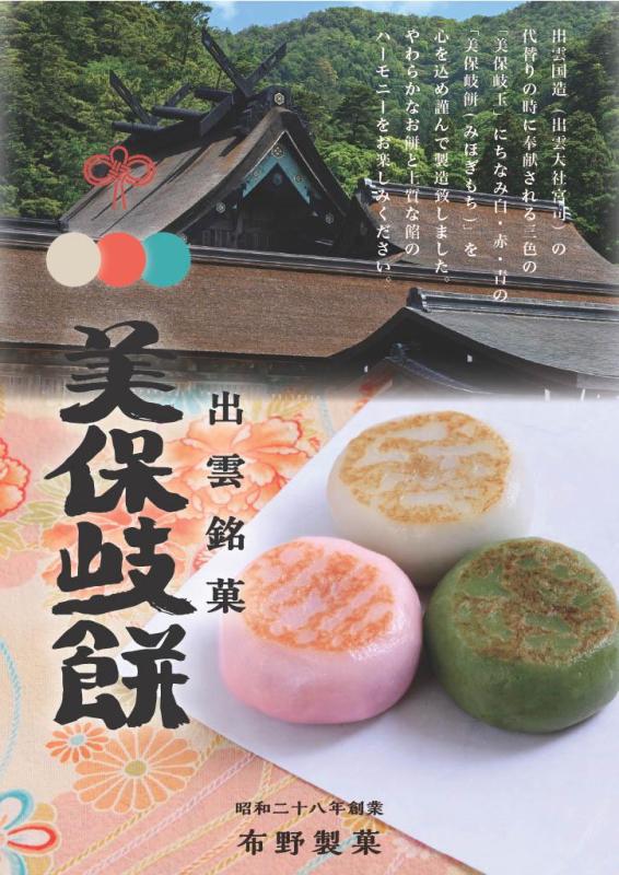 出雲国造(出雲大社宮司)の代替りの時に奉献される3色の「美保岐玉」にちなみ、白・赤・青の「美保岐餅(みほぎもち)」を心を込め謹んで製造した3色あん入り餅です。長寿と健康を祈る縁起の良いお餅ですので、慶事の際の贈り物や手土産として、また普段のお茶請けとしてもおすすめです。 ■賞味期間:冷凍90日 解凍後賞味期間:常温D+5日