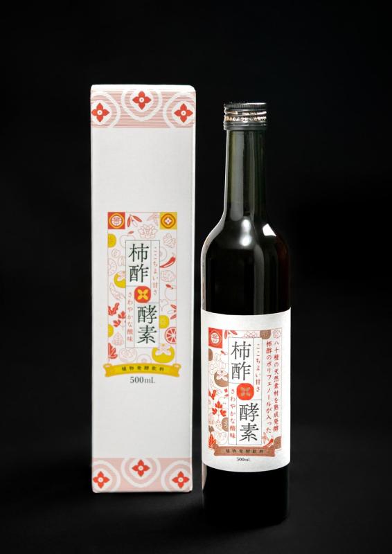 国産渋柿を無加糖・無加水でつくった柿酢と、国産ヨモギを主原料とそして80種の植物抽出液を発行させた植物発酵液をまぜた甘酸っぱい飲料です。